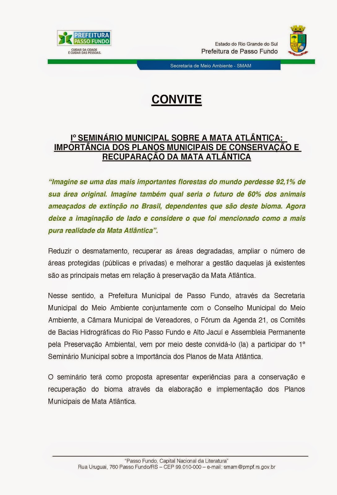 1º SEMINÁRIO MUNICIPAL SOBRE A MATA ATLÂNTICA: