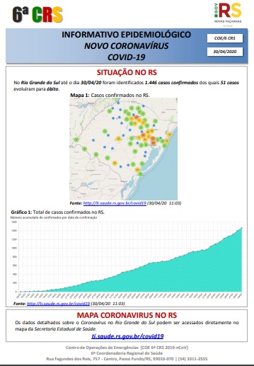 ti.saude.rs.gov.br/covid19 Os dados detalhados sobre o Coronavírus no Rio Grande do Sul podem ser acessados no mapa da Secretaria Estadual de Saúde.