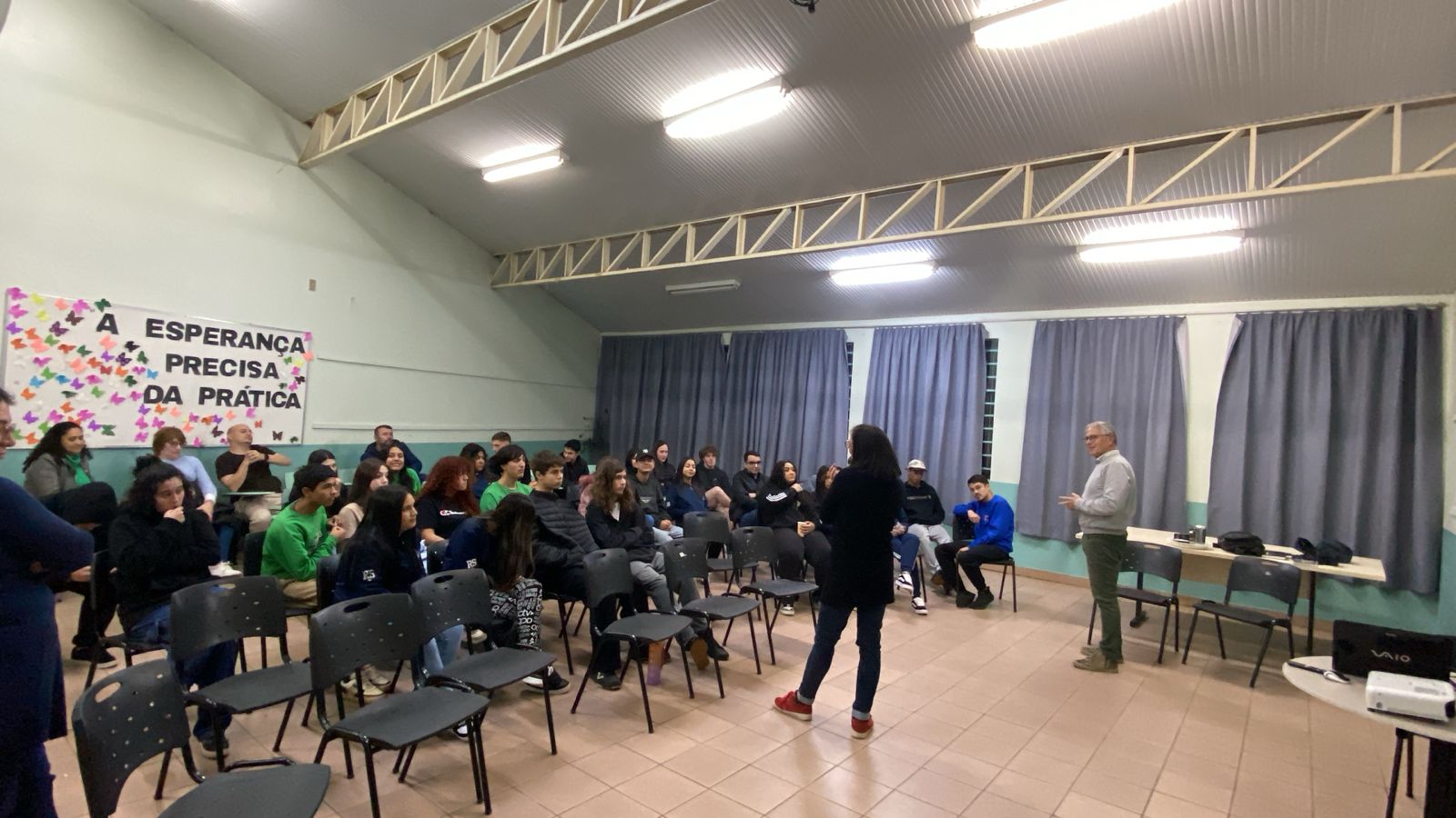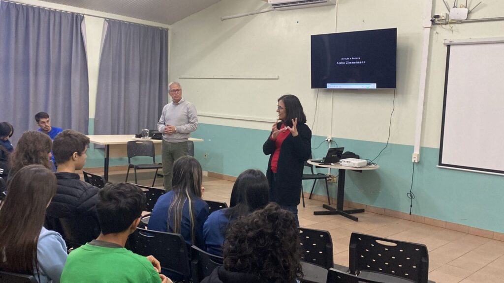 Além da exibição, foi realizada uma introdução sobre o rio Jacuí, para reconhecimento dos participantes que a escola está na região do município de Passo Fundo que corresponde a bacia do Alto Jacuí, e, após assistirem o documentário, fez-se um diálogo sobre a importância do rio Jacuí para o Rio Grande do Sul.