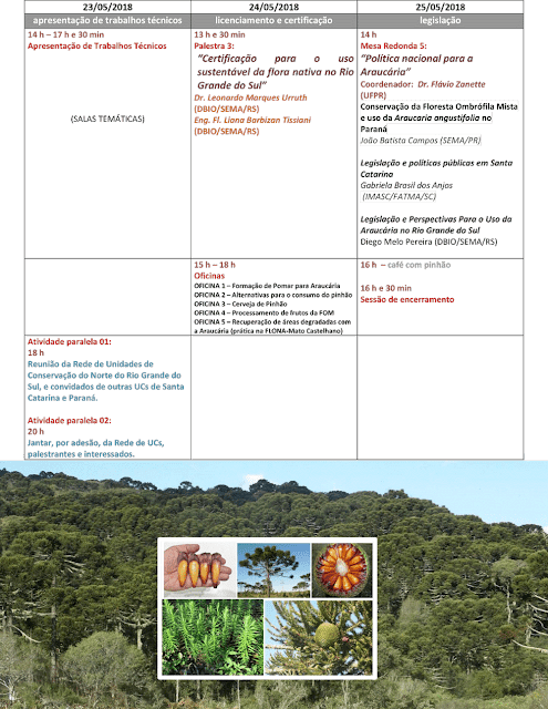 A Comissão Organizadora III Seminário Sul Brasileiro sobre a sustentabilidade da Araucária, que acontecerá na UPF, de 23 a 25 de maio, acatando sugestões de membros da Rede de UCs do Norte do RS, está oportunizando um espaço durante o evento para que a mesma possa realizar uma reunião, reencontrando amigos e colaboradores, projetando futuras ações comuns.