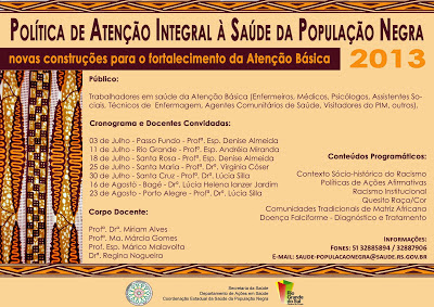 • Convite: Política de Atenção Integral à Saúde da População Negra