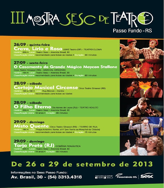 Não deixe de prestigiar a 3ª Mostra de Teatro Sesc Passo Fundo!