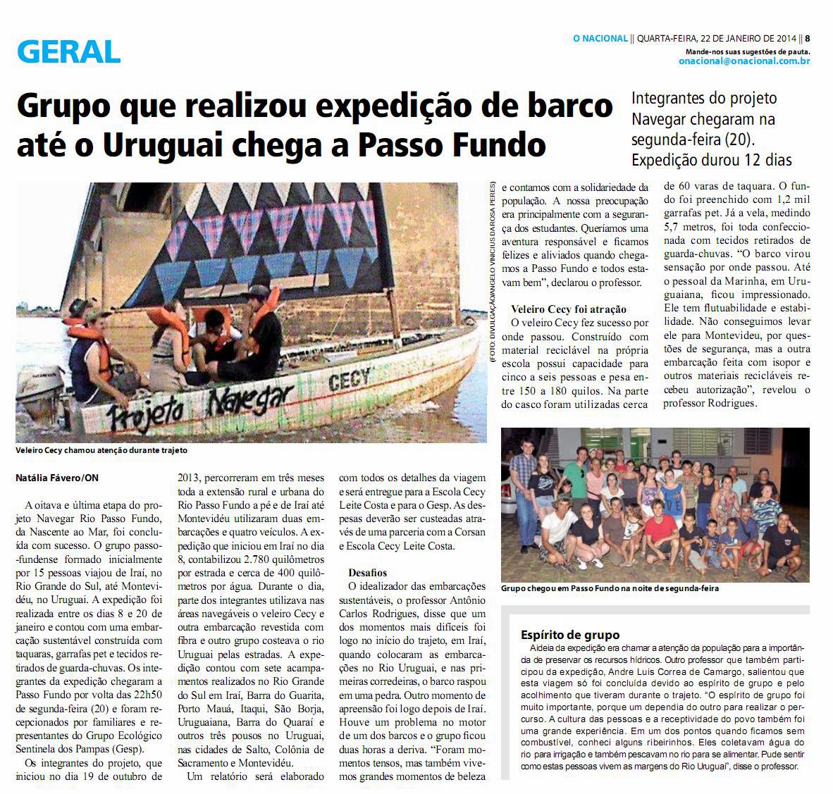 oitava e última etapa do projeto Navegar Rio Passo Fundo, da Nascente ao Mar,