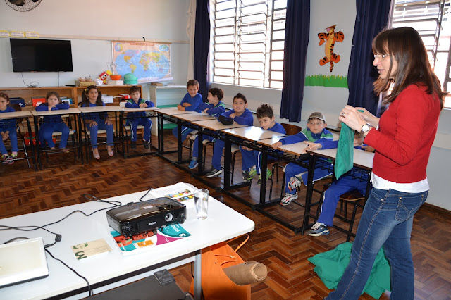 Em comemoração ao dia da árvore (21/09) o Grupo Ecológico Sentinela dos Pampas/GESP realizou atividade de educação ambiental na Escola Municipal Helena Salton. Foi desenvolvido duas oficinas sobre resíduos sólidos e a reciclagem para alunos de 1º e 2º anos do ensino fundamental com a participação de 34 alunos e professores. Após as atividades em sala de aula , os alunos , professores e os ecologistas realizaram o plantio de uma árvore nativa no pátio da escola, comemorando o dia da árvore. Esta foi uma das ações de comemoração do aniversário do GESP, fundado em 21 de setembro de 1983. Participaram Profª Flávia Biondo da Silva e o Gestor Ambiental Ricardo Assumpção.
