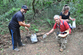 | Excurcionistas recolhendo lixo pelas trilhas |