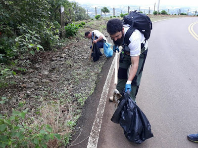 Faxinal coletando o lixo descartado de forma irregular, o outro grupo se reuniu