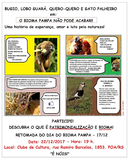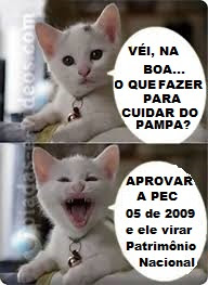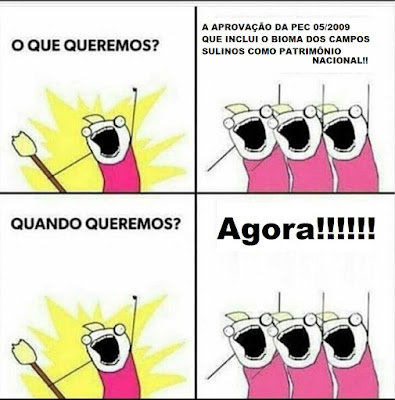 Um total de 178 mil km2, cenário único, exclusivo do Rio Grande do Sul, está em grave risco de extinção. Pela aprovação da Proposta de Emenda à Constituição Federal – PEC 05/2009. Vote sim ao novo texto que inclui como Patrimônio Nacional o bioma dos Campos Sulinos!