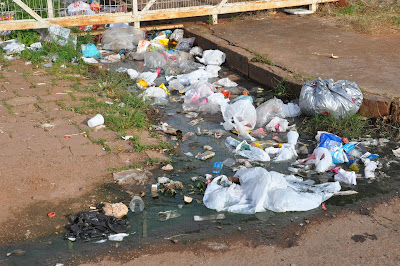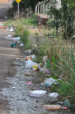 Nos condomínios residencias localizados na Rua Miguelzinho Lima (Bairro Santa Marta) e Rua Giorgina Schell (Bairro Donária) foi identificado o despejo de resíduos oriundos de esgoto doméstico em quantidade significativa sendo despejados no calçamento, rua e área de uso coletivo. A passagem de pessoas e crianças, bem como de automóveis é intenso, prejudicando e interferindo diretamente na comunidade. Além do material líquido ser despejado em área pública, ele corre pela rua e é “armazenado” em um terreno baldio onde já está sendo formado um depósito de resíduos sólidos (sofás, material de reformas, madeiras, lixo doméstico, entre outros). Após este local, o esgoto é desaguado em um pequeno riacho.
