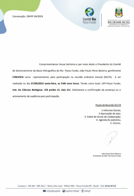 • Convocação Reunião do Comitê do Rio Passo Fundo