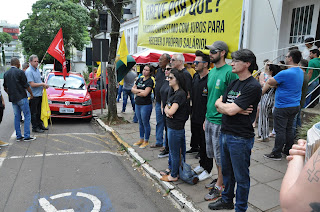 Esta manifestação faz parte do movimento unificado dos funcionários públicos estaduais que encontram-se em greve, em virtude do desmonte do serviço público proposto pelo Governo do Estado. Entendemos que o pacote apresentado retira direitos conquistados com muita luta ao longo dos anos, penalizando os que ganha menos. Com isso, os serviços públicos ofertado à população como saúde, educação, segurança e outros, não estarão garantidos.