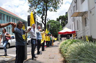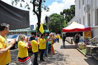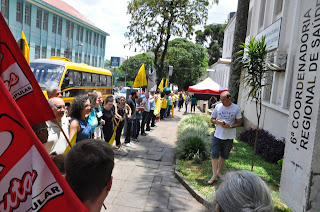 Foi realizado na manhã de quarta-feira (04) uma manifestação com representantes de diversas categorias do serviço público, sindicatos, conselhos, movimento estudantil e Ongs, finalizando com um abraço simbólico no prédio da 6ª Coordenadoria Regional de Saúde em defesa do Sistema Único de Saúde/SUS.