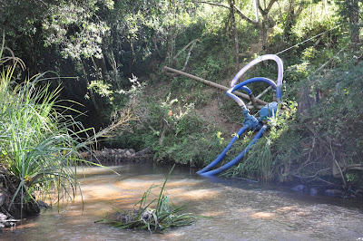 Moto bomba e tubulação nas margens do Rio Jacuí – Foto Arquivo GESP