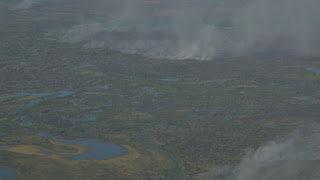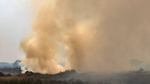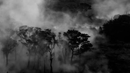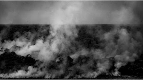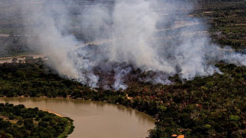 em meio à fumaça intensa, que piora problemas respiratórios diante do duro cenário da pandemia do coronavírus.