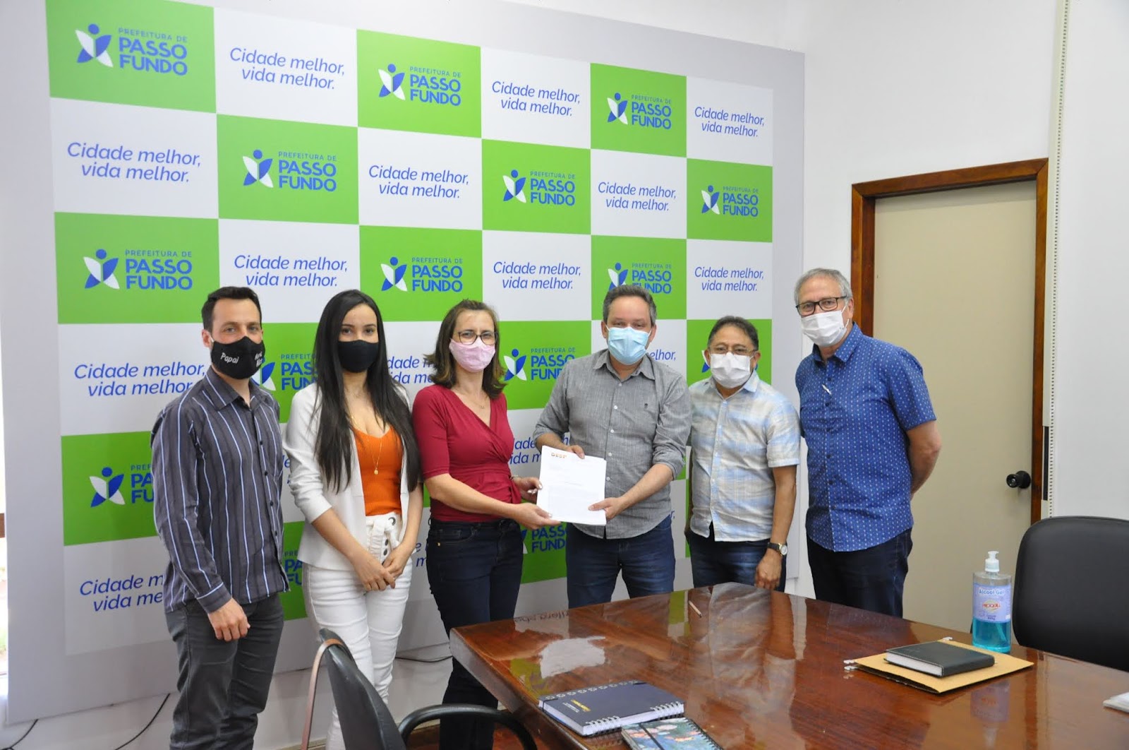 No dia 30 de novembro, o Grupo Ecológico Sentinela dos Pampas (gesp) participou de uma reunião com o Prefeito Municipal Exc. Sr. Pedro Almeida, entregando diversos documentos contendo propostas, ações e projetos na área ambiental para serem desenvolvidos nos próximos anos em nossa cidade. Recuperação do Rio Jacuí, Parque Linear do Rio Passo Fundo, fortalecimento da estrutura funcional da Secretaria Municipal do Meio Ambiente (SMAM), revitalização e recuperação dos Plátanos da Praça Tamandaré, atividades de educação ambiental e patrimonial com realização de eventos com as escolas públicas e particulares, utilização sustentável para o Parque Wolmar Salton, estudo para novas unidades de conservação, fortalecimento do Fórum da Agenda 21. Neste mesmo momento, também foi entregue o documento “Proposta Gestão Ambiental 2022”, contendo dezenas de sugestões sobre acessibilidade, cultura, educação, trânsito, patrimônio histórico, saúde pública, entre outros. Estavam presenta a Srª Gabriela Engers, Secretária Municipal do Meio Ambiente, Ademar Marques, representando a Agenda 21 e os integrantes do GESP Flávia Biondo da Silva, Tiago Debona e Paulo Fernando Cornelio.