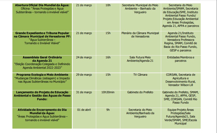 As atividades estão sendo realizadas durante todo o mês de março, destacando o tema elencado pela ONU para 2022 “Água Subterrânea – Tornando o Invisível Visível”.