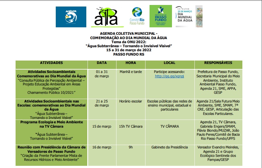 As atividades estão sendo realizadas durante todo o mês de março, destacando o tema elencado pela ONU para 2022 “Água Subterrânea – Tornando o Invisível Visível”.