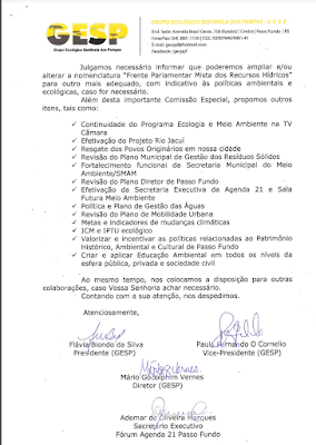 Na oportunidade, em nome dos presentes, Paulo Cornélio destacou o papel importante e respeitável do Legislativo Municipal nas diversas áreas que envolvem as políticas públicas da cidade, razão pela qual, “em nome da Agenda 21 e do GESP, estamos trazendo propostas que pretendemos trabalhar durante o ano, no sentido de fortalecer e contribuir com o parlamento, algumas ações que já estão em andamento e que são de conhecimento dos vereadores e outras ideias mais recentes que surgiram com o objetivo de qualificar e ampliar os trabalhos nessa área”, explicou.