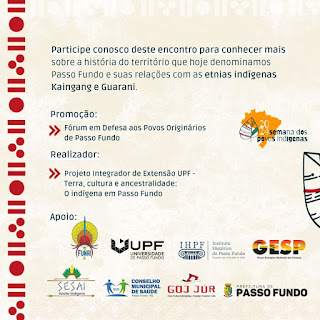 Neste momento, devido a proximidade do Dia dos Povos Indígenas, o Fórum organizou uma programação especial e convida a comunidade passo-fundence para participar. Segue a programação: