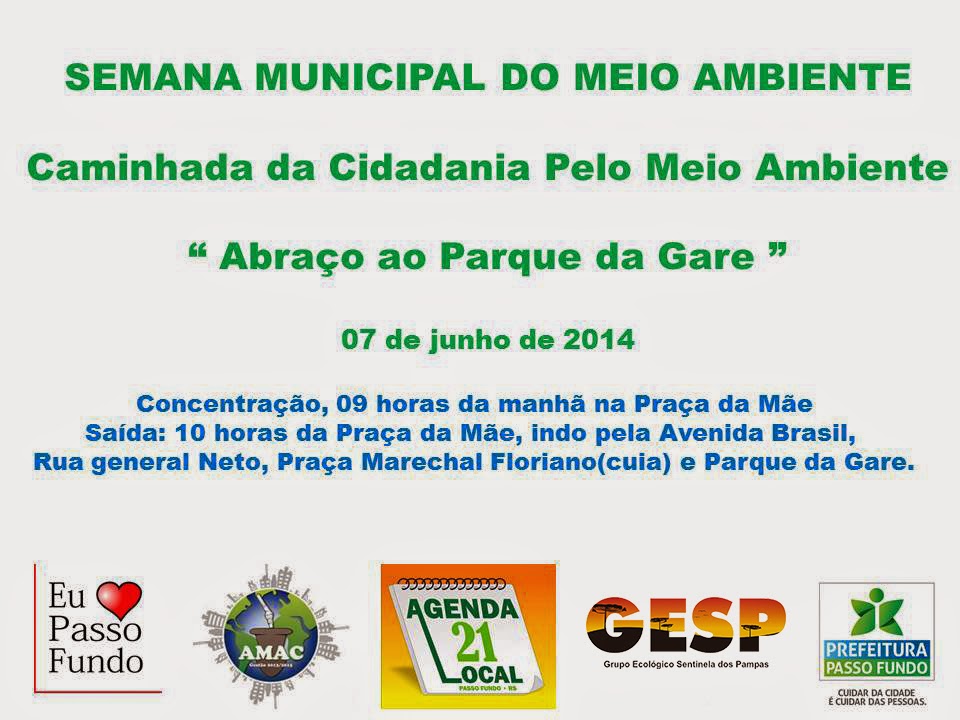 by GESP Leia Mais...Concentração acontece às 9h, na Praça da Mãe. Caminhada será em direção ao Parque da Gare A Caminhada da Cidadania pelo Meio Ambiente é uma das principais atividades...