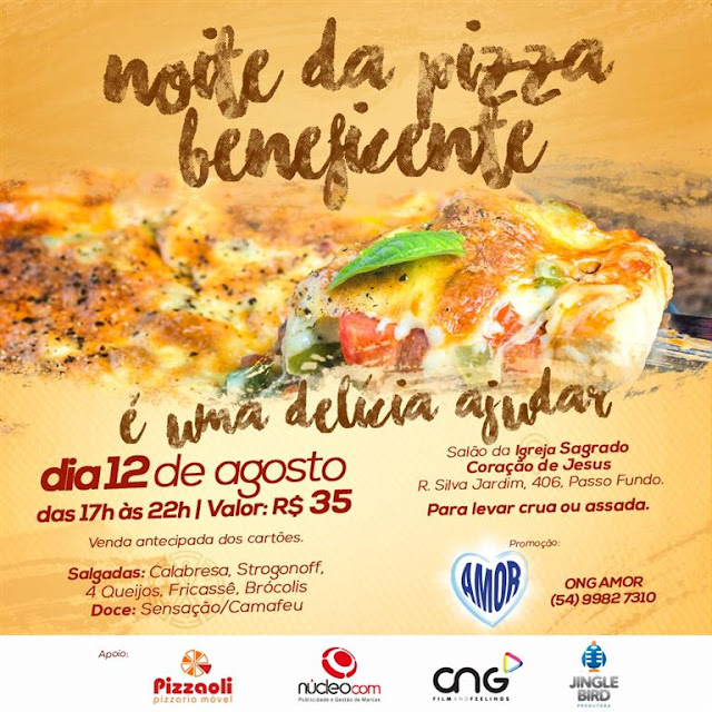 by GESP Leia Mais...A ONG Amor, promove mais uma Noite da Pizza Beneficente. Precisa-se de ajuda para a venda dos cartões e divulgação. Click no Link e adquira o seu ingresso...
