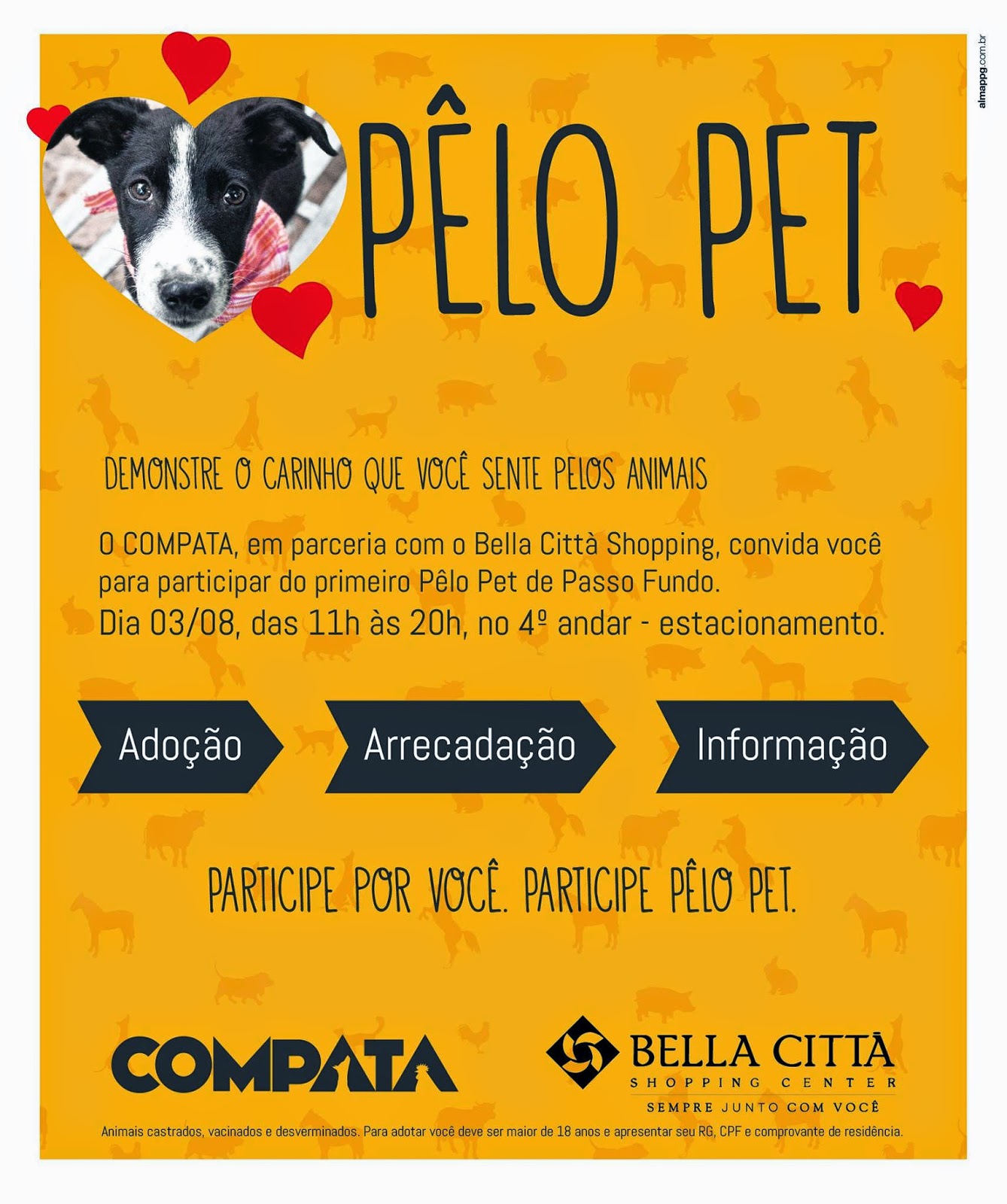 by Mari Lourenço Leia Mais...O COMPATA, em parceria com o Bella Città Shopping, convida você para participar do 1º Pêlo Pet de Passo Fundo. Será Domingo, dia 3 de Agosto de 2014,...
