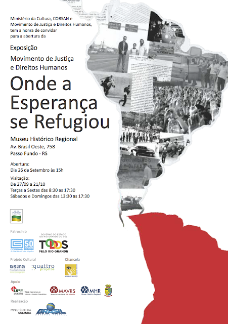 by GESP Leia Mais...Contamos com a sua presença para recebermos juntos o presidente do Movimento de Justiça e Direitor Humanos, Jair Krischke de Porto Alegre para a abertura da Exposição: “Onde...