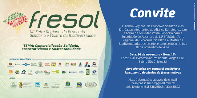 Prezados Integrantes do FREPS/FRESOL, Cumprimentando a todos (as), convidamos os empreendimentos, entidades de apoio e assessoria, instituições do poder público municipal e estadual, cooperativas, entidades e organizações comunitárias,...