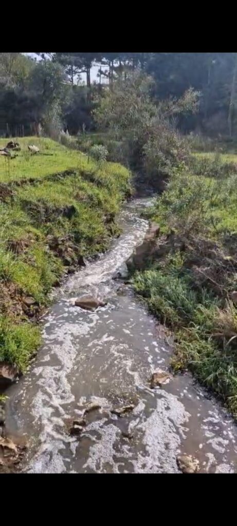Conforme os relatos repassados ao GESP, em um riacho denominado Arroio AABB, vem ocorrendo o lançamento de produtos ou substâncias químicas sintéticas, ocasionando poluição e modificando a coloração da água.