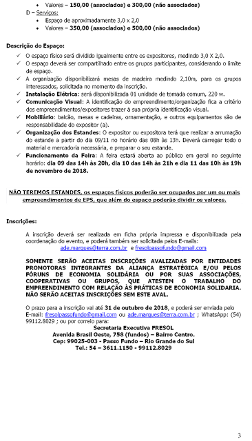 Na oportunidade encaminhamos informações e ficha de inscrição para a 17ª FRESOL