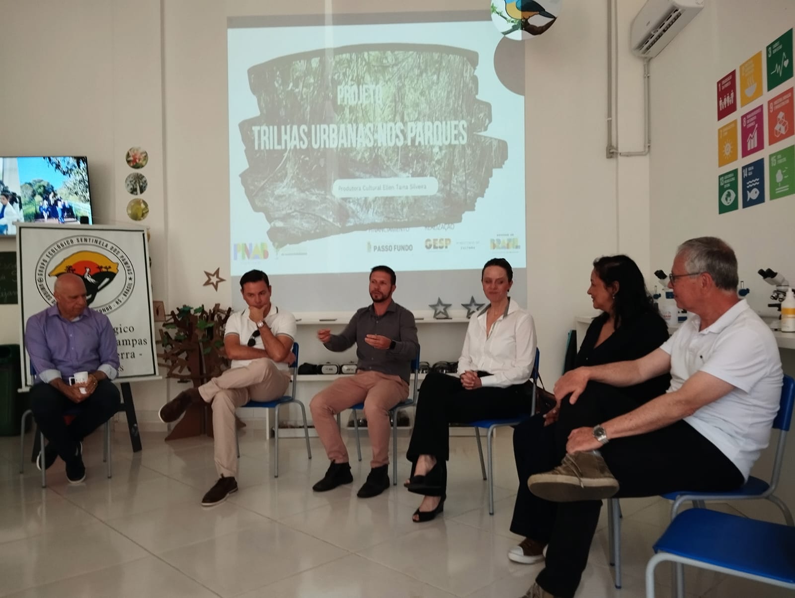 Como parte das ações do projeto Trilha Urbana nos Parques, foi realizada rodas de conversa com especialistas das áreas de meio ambiente, história, educação e cultura. A atividade tem como objetivo promover o diálogo, a troca de conhecimentos e a construção coletiva de conteúdos que irão integrar a trilha interpretativa entre o Parque da Gare e o Parque Ambiental Banhado da Vergueiro, em Passo Fundo.