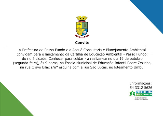 Lançamento da Cartilha de Educação Ambiental Passo Fundo: do rio à cidade – conhecer para cuidar, foi realizado na manhã dessa segunda-feira Contar para encantar. Assim foi o...